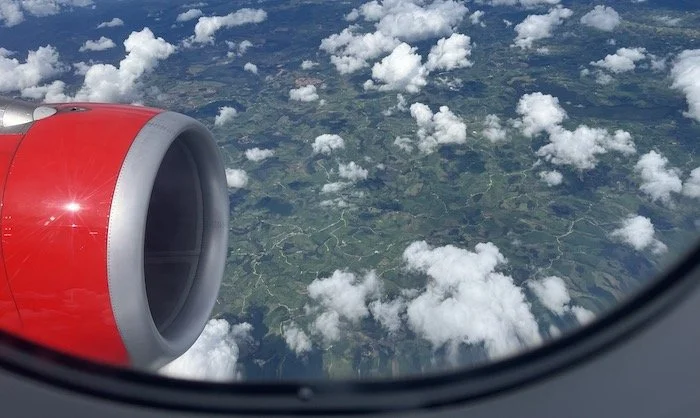 The connection time between flights was short and our next flight left from a different terminal, so we practically ran to the gate. I rushed to the desk waving my boarding pass and blathering about how I could not possibly sit in a row without a window! I’m not sure the poor gate attendant fully understood my hysterics, but he quickly moved me to the emergency exit row. Perfect! I not only had a window - I had an escape hatch! Meanwhile, Michael was ten rows behind me in 27 A with a window! Same model. Different configuration. And a nice treat for Mr. Campbell.