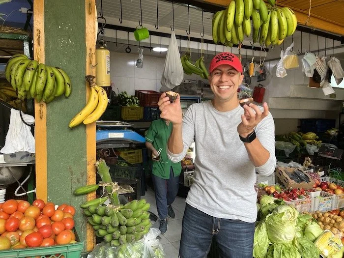 On a lighter note, Oscar took us to a sprawling food market where we had a fruit tasting. The variety of fruit grown in this region is mouth-boggling. They look strange, they taste strange, and they probably are not on the shelves of even your most adventurous gourmet grocery store. (Watch the video above to see how to open a Granadilla so you can slurp out the “alien brains’ inside)