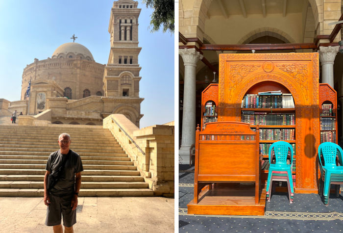 The new Coptic Church, a vignette from the mosque, and an image of one of the 22 mummies at the Civilization Museum.