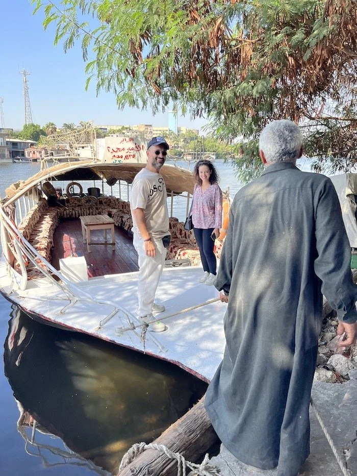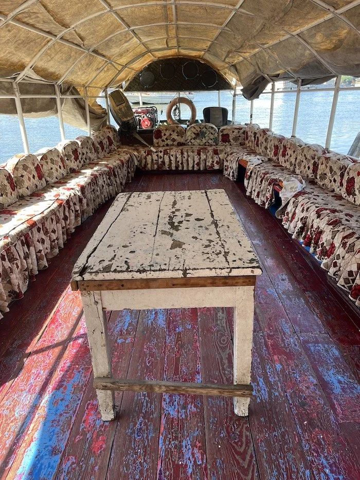 They also hosted us for an afternoon cruise on the river. Like most things in Egypt, the boat had seen better days, but we had it to ourselves, and the owner seemed overjoyed to have any guests at all. In fact, to be sure we had a good time he had the skipper start up the boat’s very loud rattle-trap generator just to run a set of speakers so we could party to Egyptian Hip Hop. We quickly killed that and enjoyed the steady putter of the outboard instead.