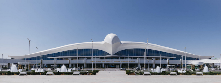 The Ashgabat airport is shaped like a falcon. It is a stunning piece of architecture inside and out. It might be the most architecturally beautiful airport in the world.